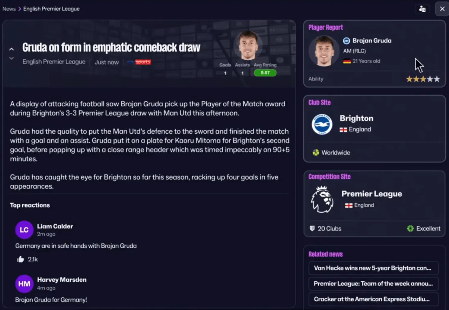 体育新闻-官方:《足球经理26》将在11月5日同步发售PC/Mac版本
