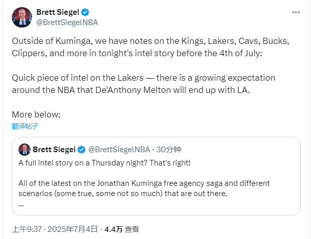 佩总再出手!梅尔顿预计加盟湖人,捡漏3D后卫辅佐东皇冲冠?